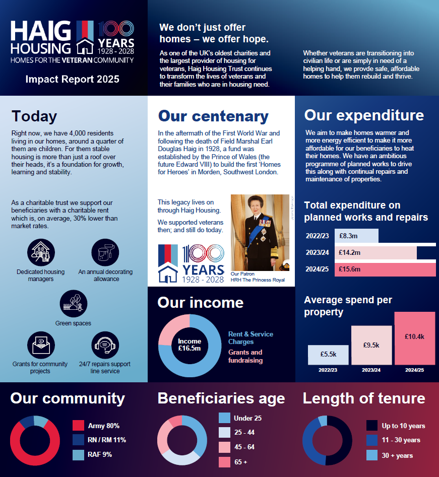 Haig’s Impact Reports are published annually for anyone interested in seeing Haig’s achievements in numbers, the difference we make, and how we support our beneficiaries
